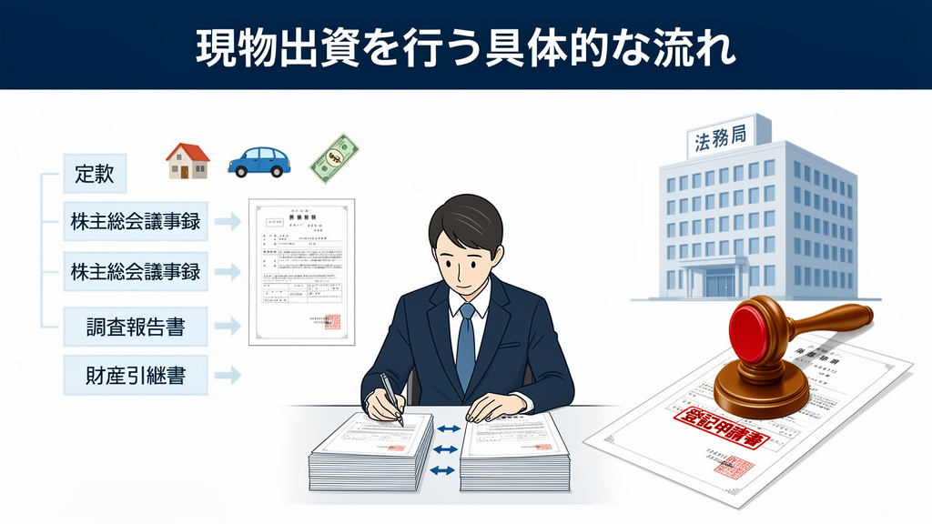 ここでは、会社設立時および設立後の増資において共通する、現物出資の基本的な実行プロセスを解説します。