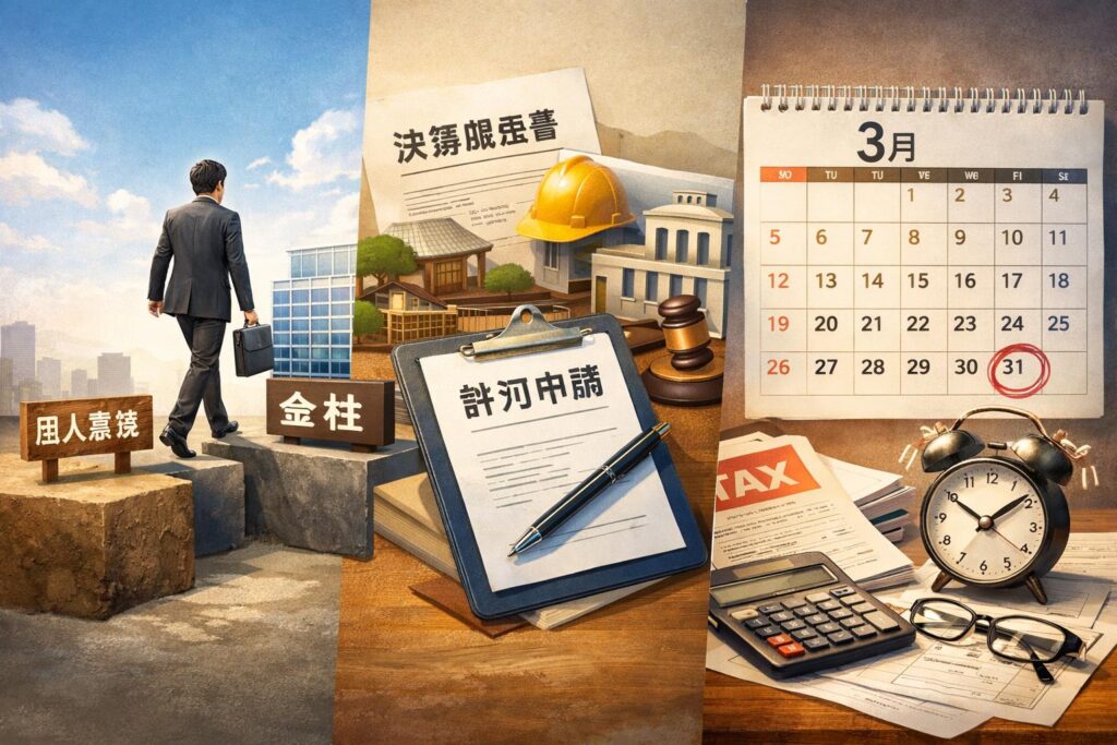 建設業、不動産業、人材派遣業、古物商など、事業を行うために国や都道府県から許認可を得る必要がある業種では、その許認可のルールも決算月決定の重要な要素となります。